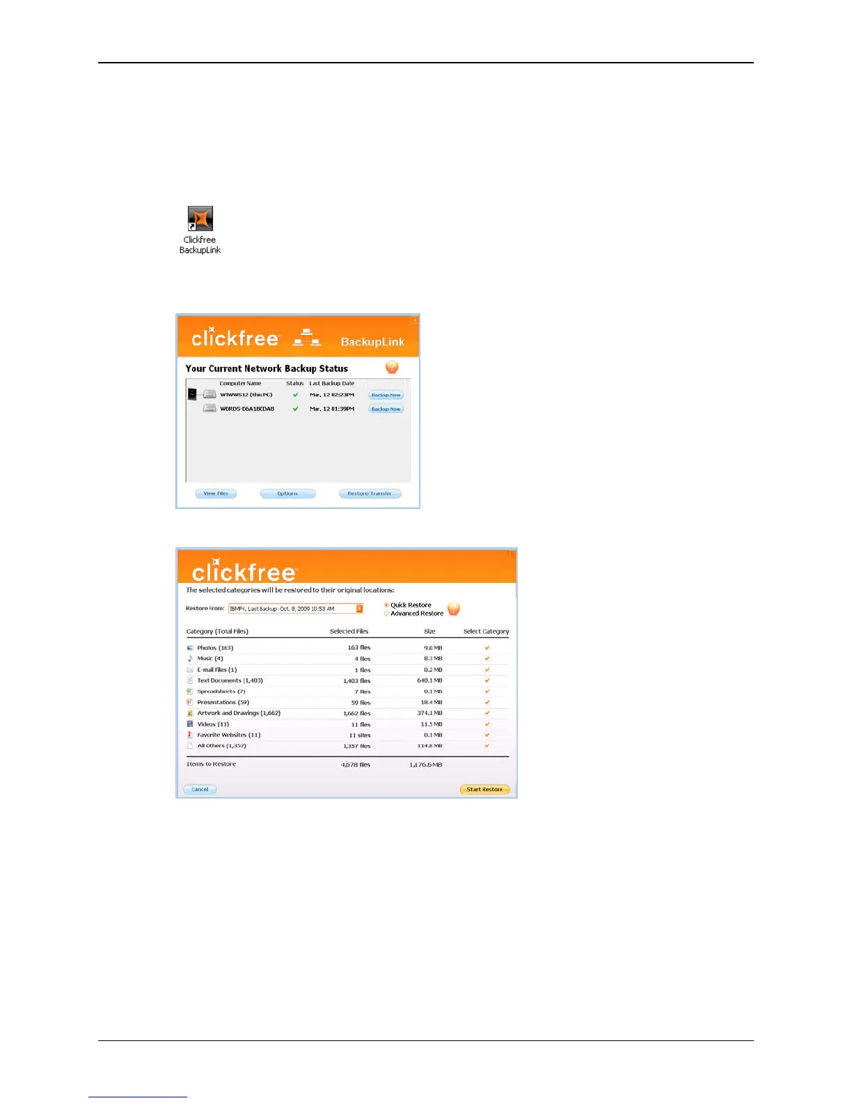 Clickfree C2N Home Backup Drive User Guide Restoring My Content (HD)