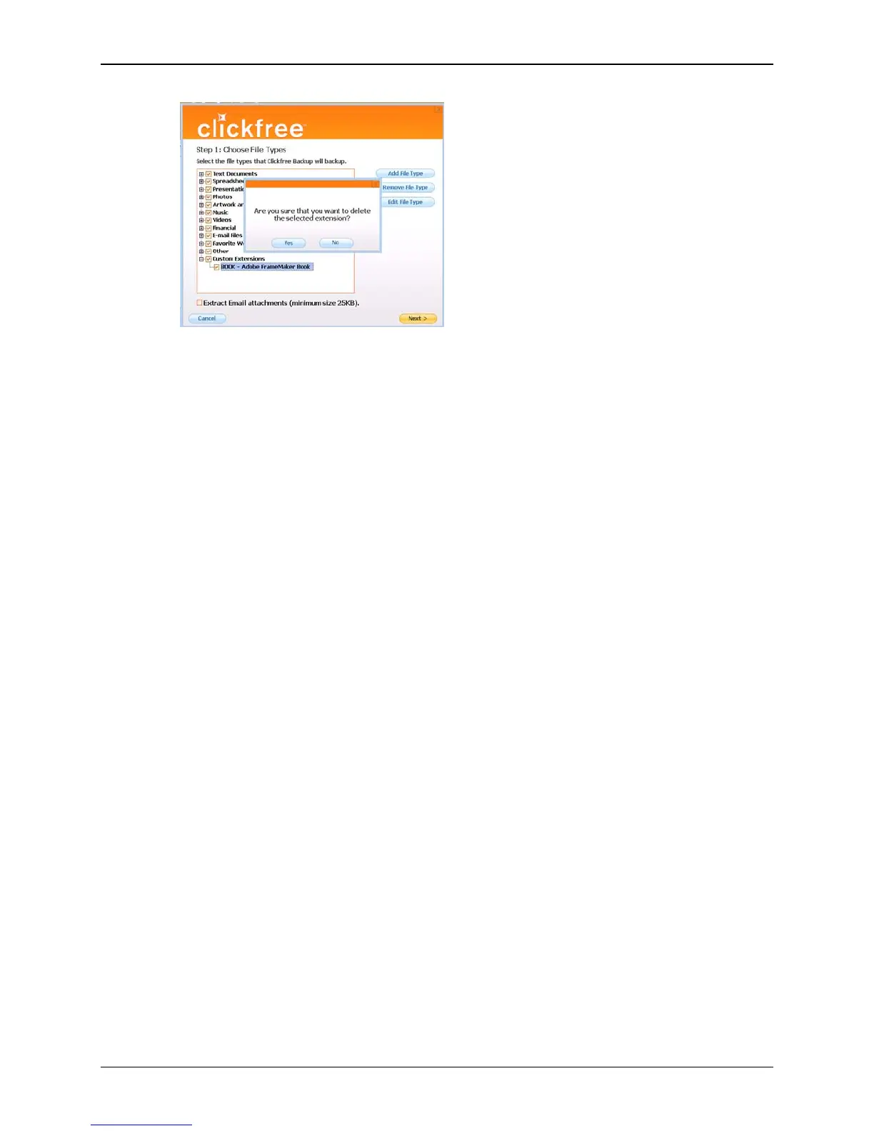 2. You can now choose the individual types of file you want to include in the backup
