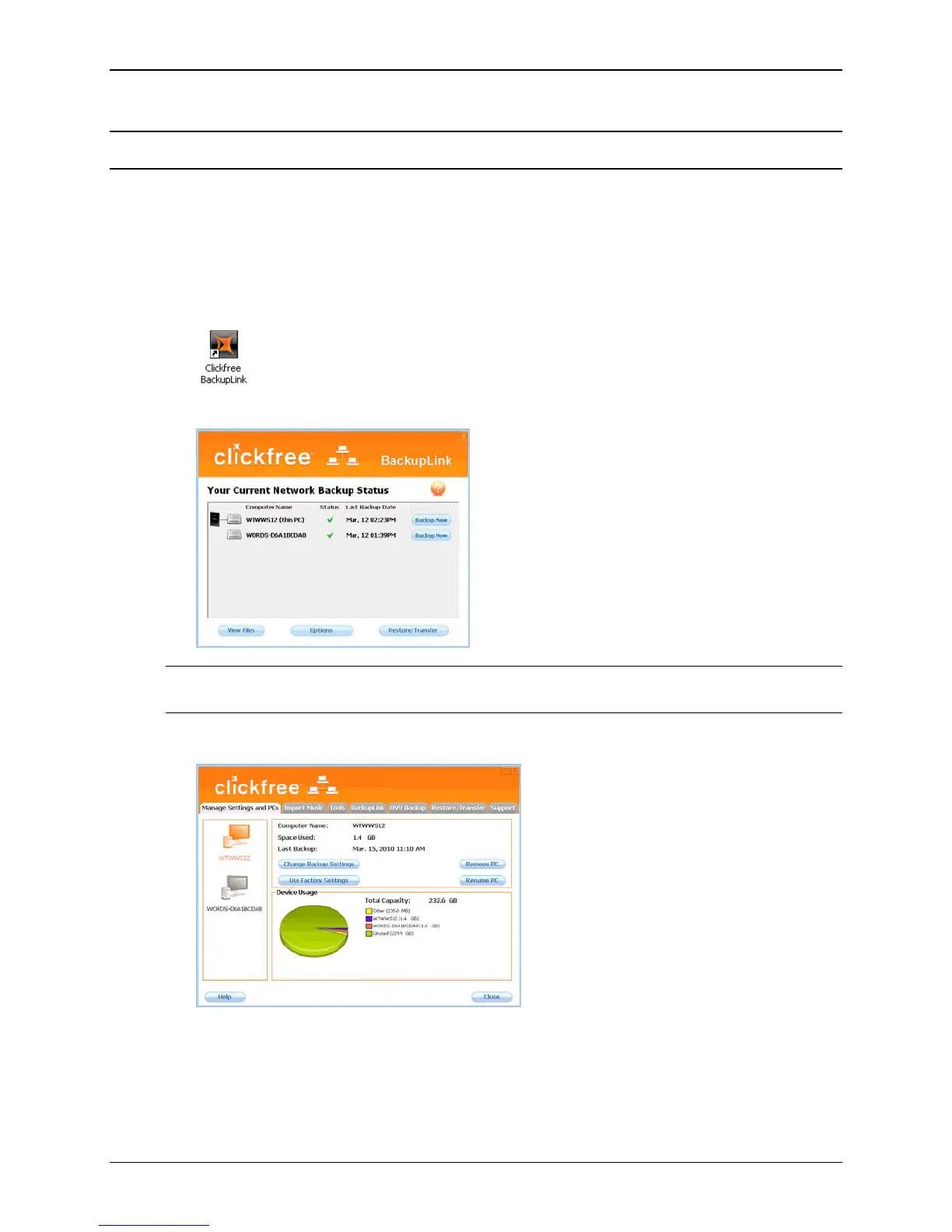1. Double-click the icon on the desktop to open the BackupLink Status screen (or click