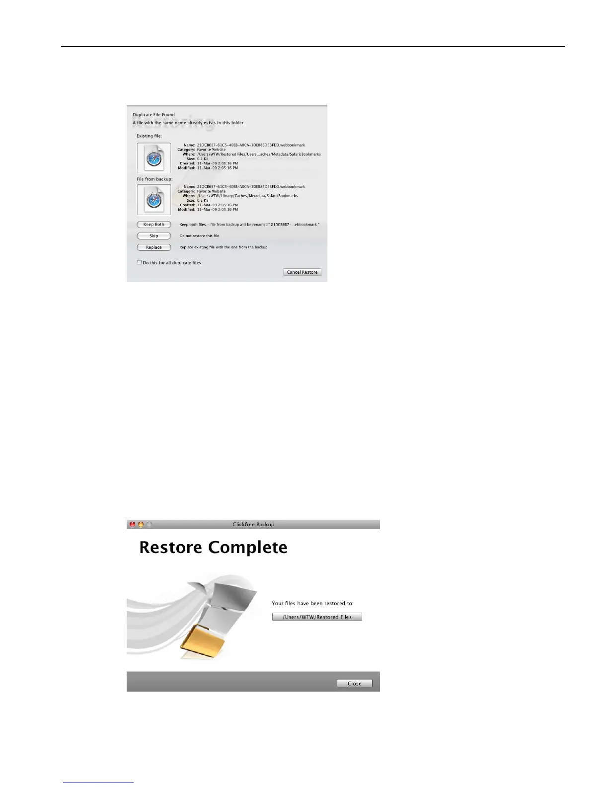 the backed-up files, Clickfree asks if you want to replace the existing file with the one