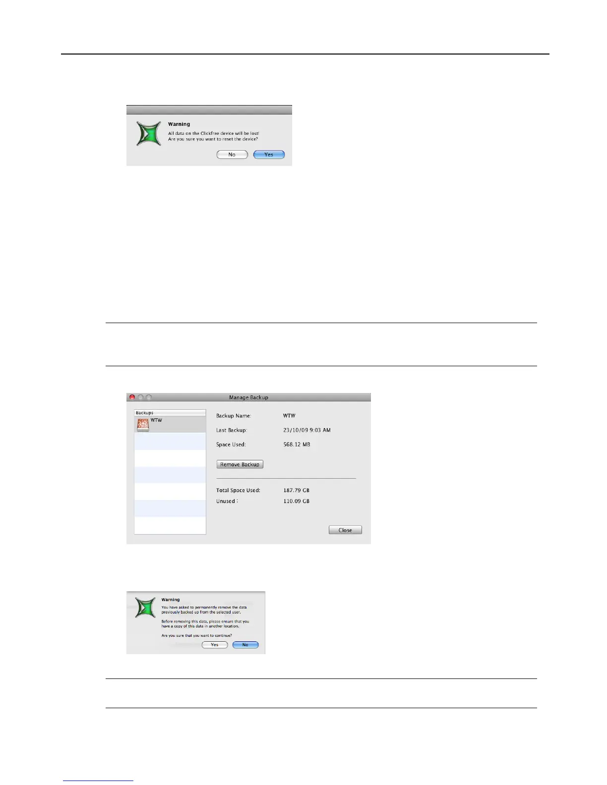 Warning: Once you have removed a user’s backups from Clickfree there is no way to