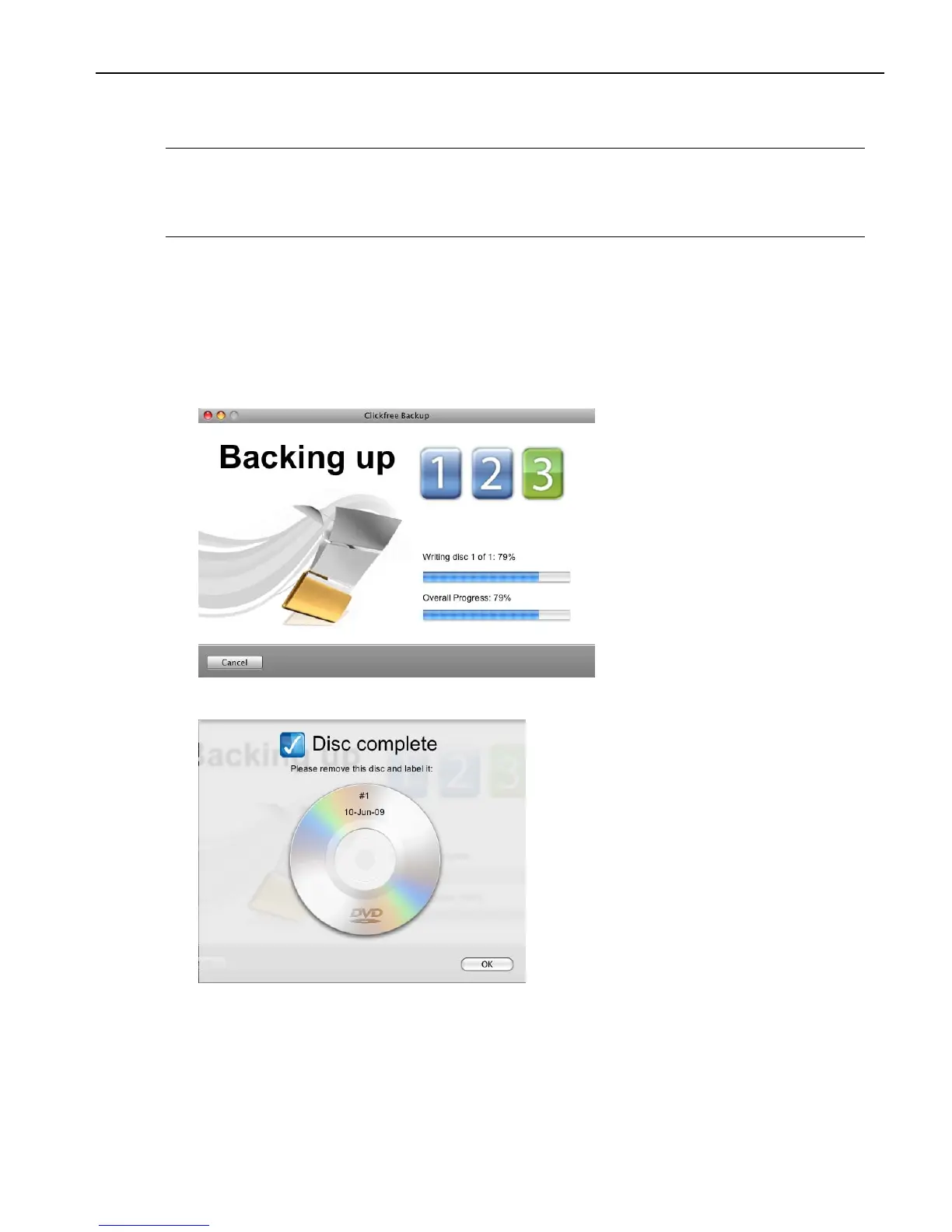 Note: At this point, Clickfree calculates how many disks are needed to hold all of the