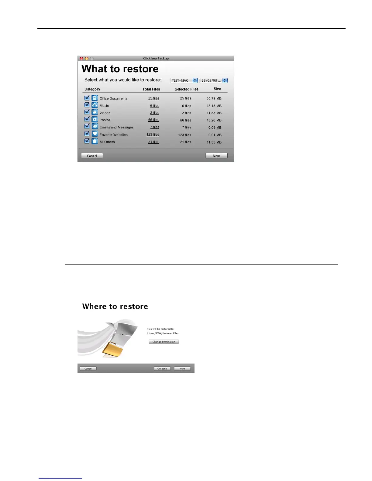 5. Since you are letting Clickfree restore all of your content, simply click Next.