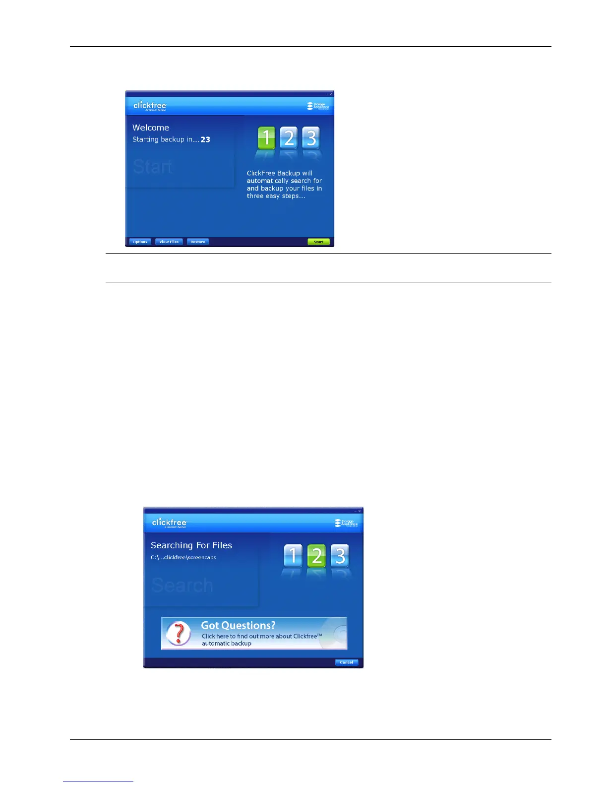 Clickfree starts the backup.