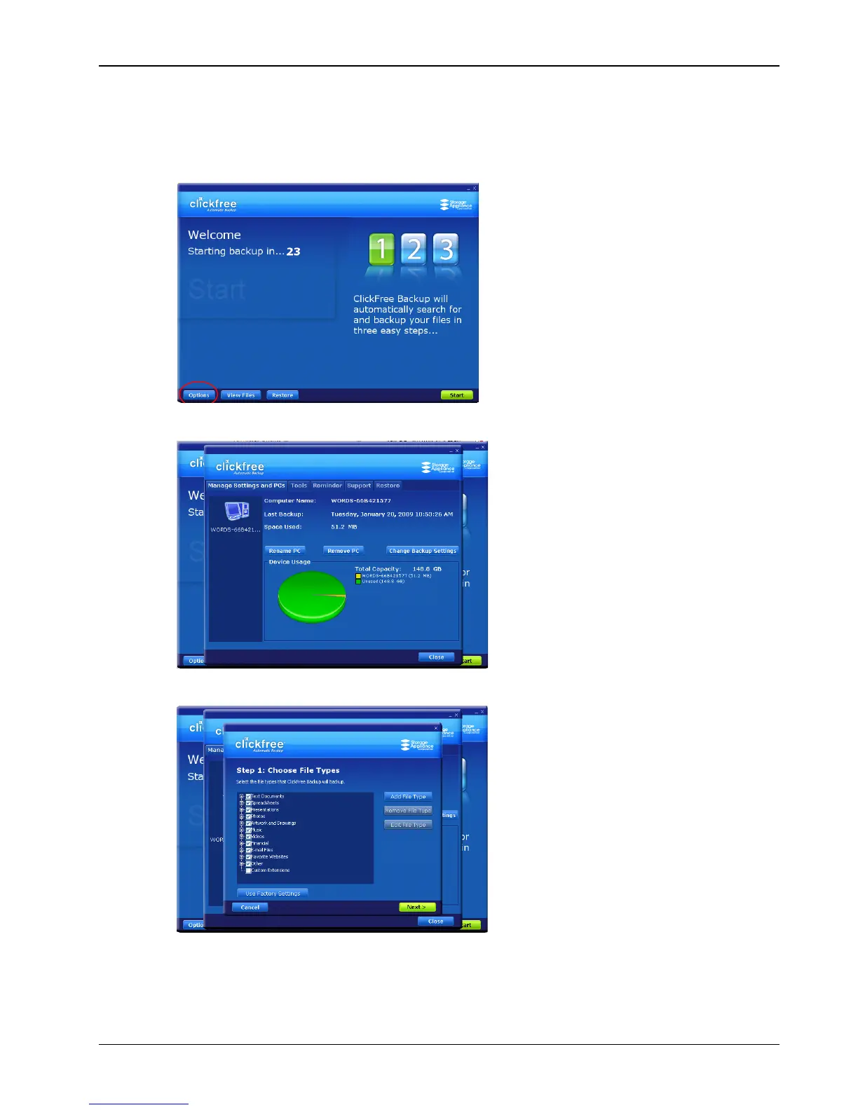 Clickfree Portable Backup Drive User Guide Backing up my content