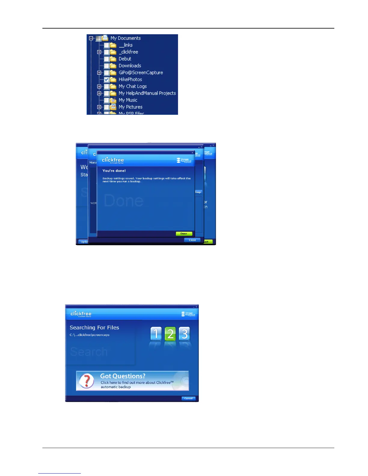 Before actually backing up any content, Clickfree searches the locations you chose for your