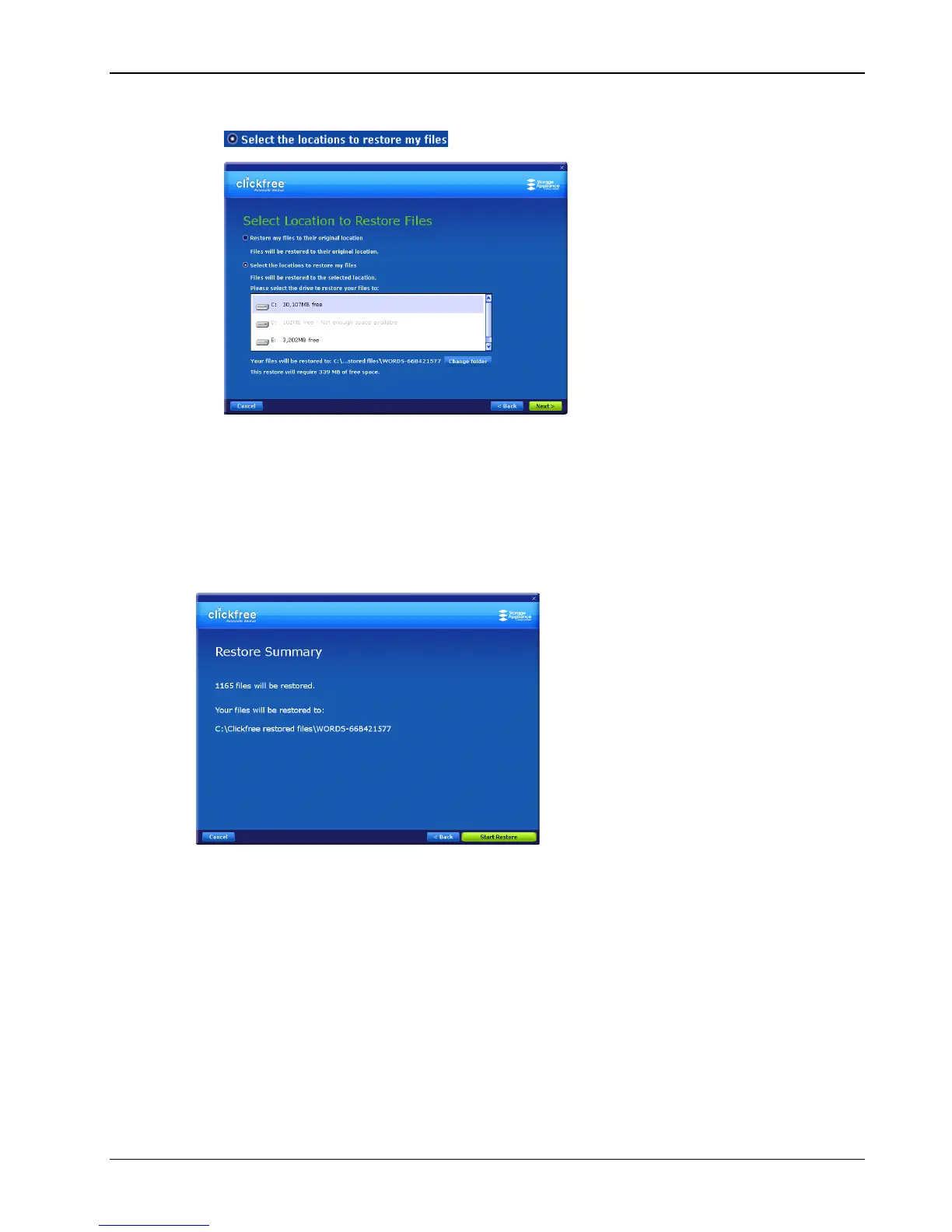• If you want to restore your files to a location where they will not overwrite existing