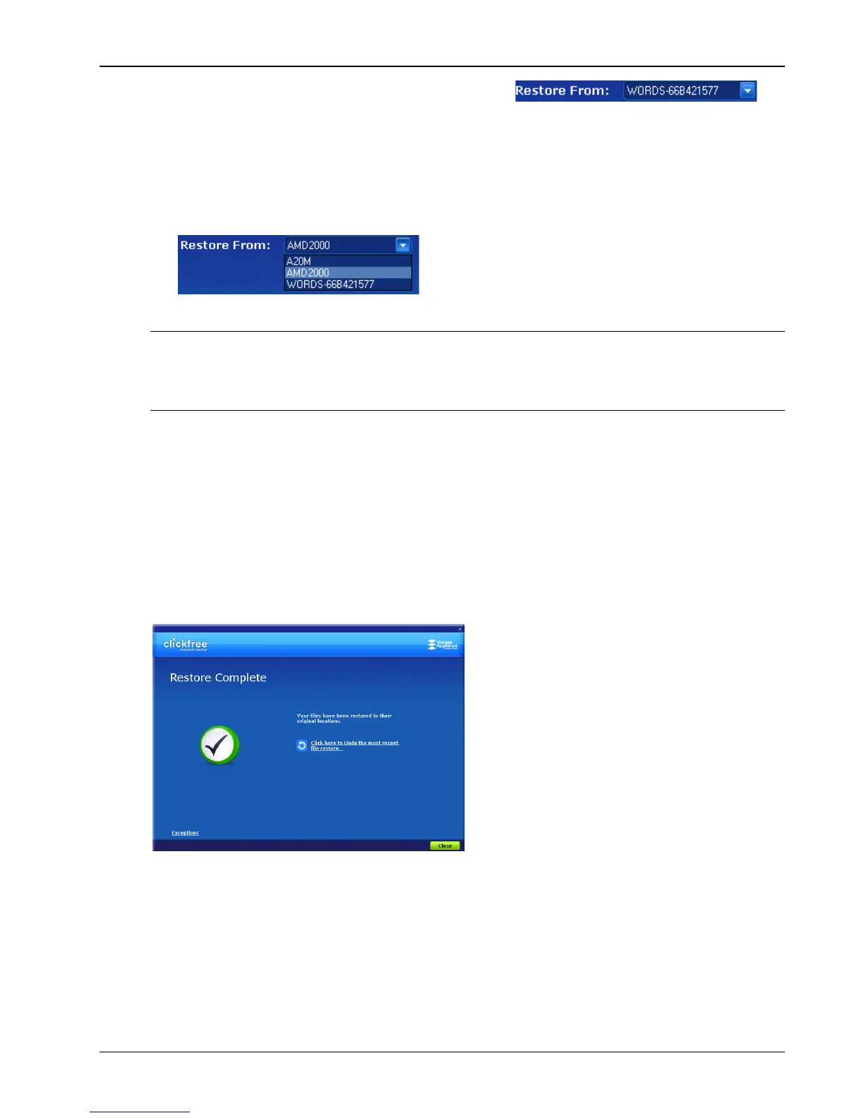 2. Continue with restore as described in “How do I let Clickfree restore decide what to