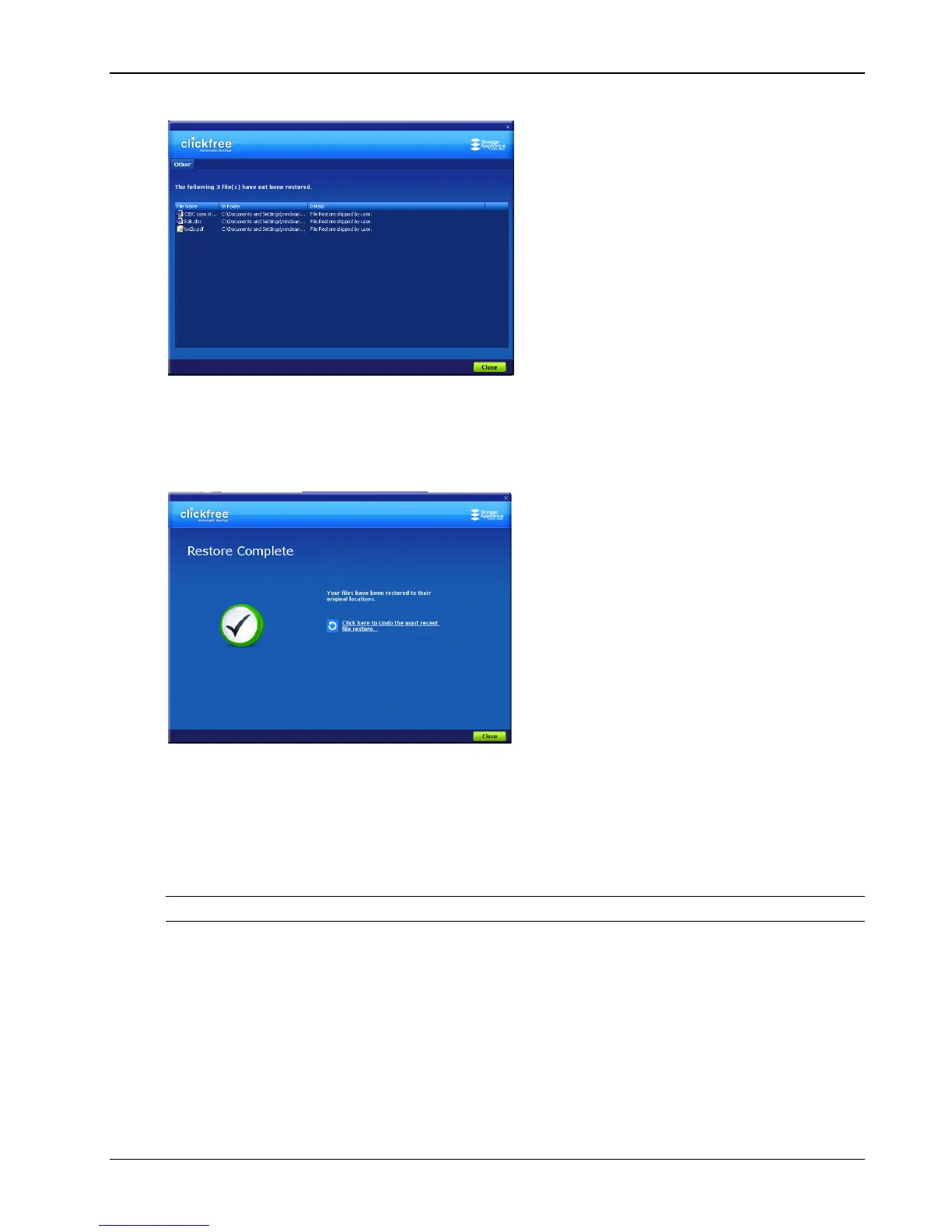 Whenever you restore files to their original locations, Clickfree gives you a chance to undo