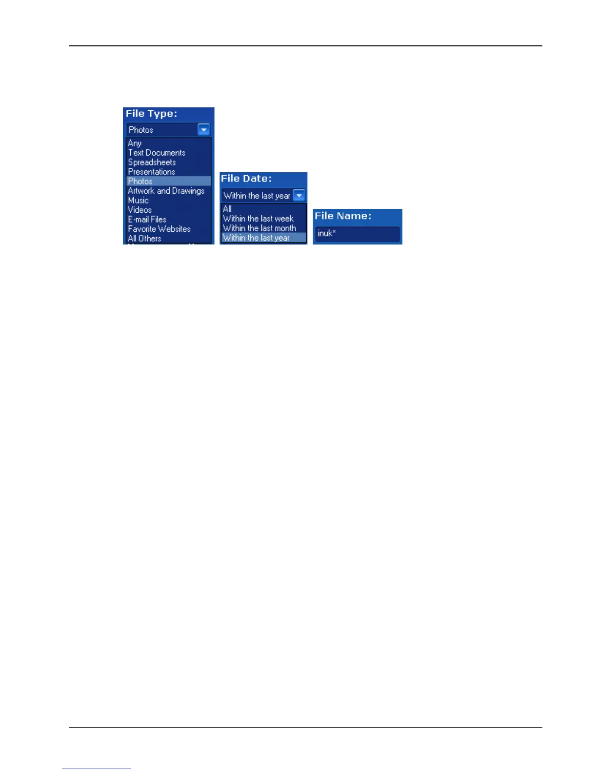 • File Type – select a category, or ‘Any’ if you want all categories to be searched