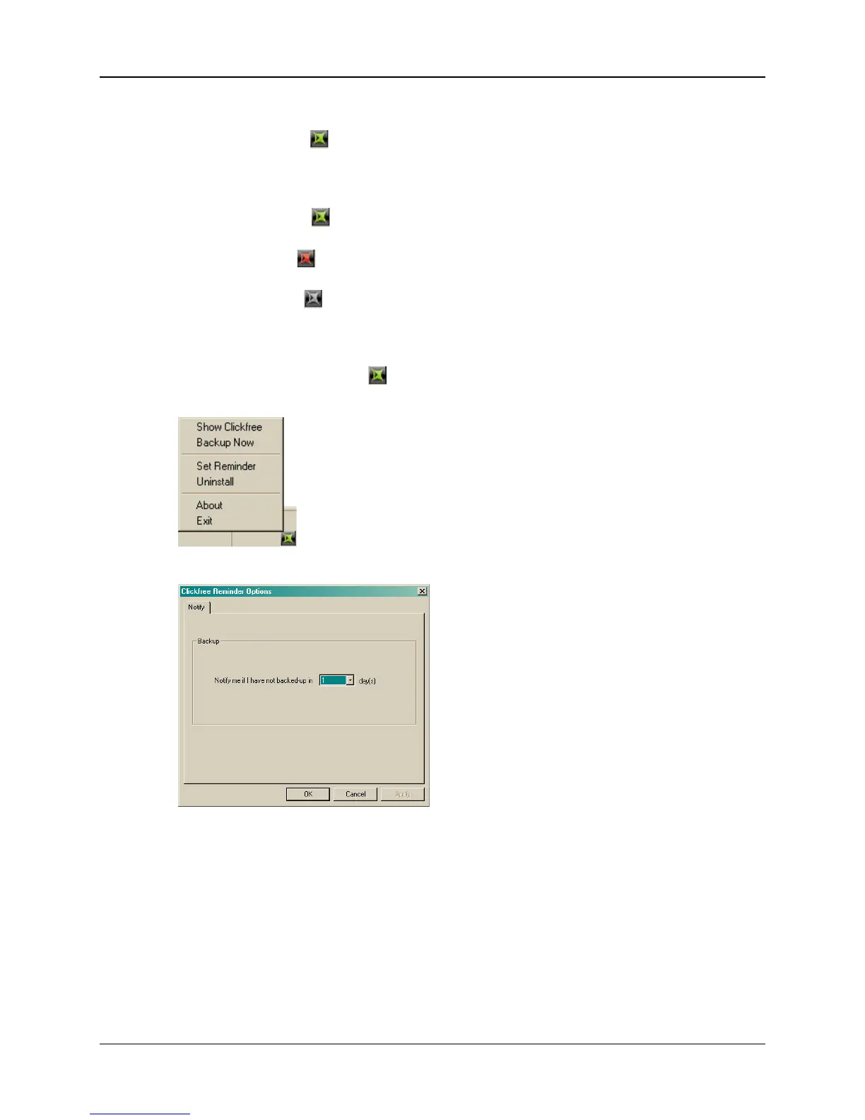 ♦ To set the number of days before Clickfree reminds you to back up: