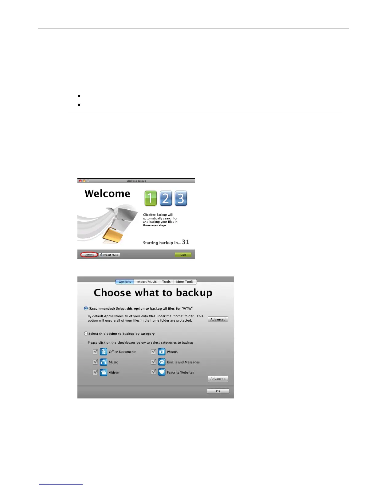 Clickfree Portable Backup Drive for Macintosh: User Guide Backing up my content (HD)