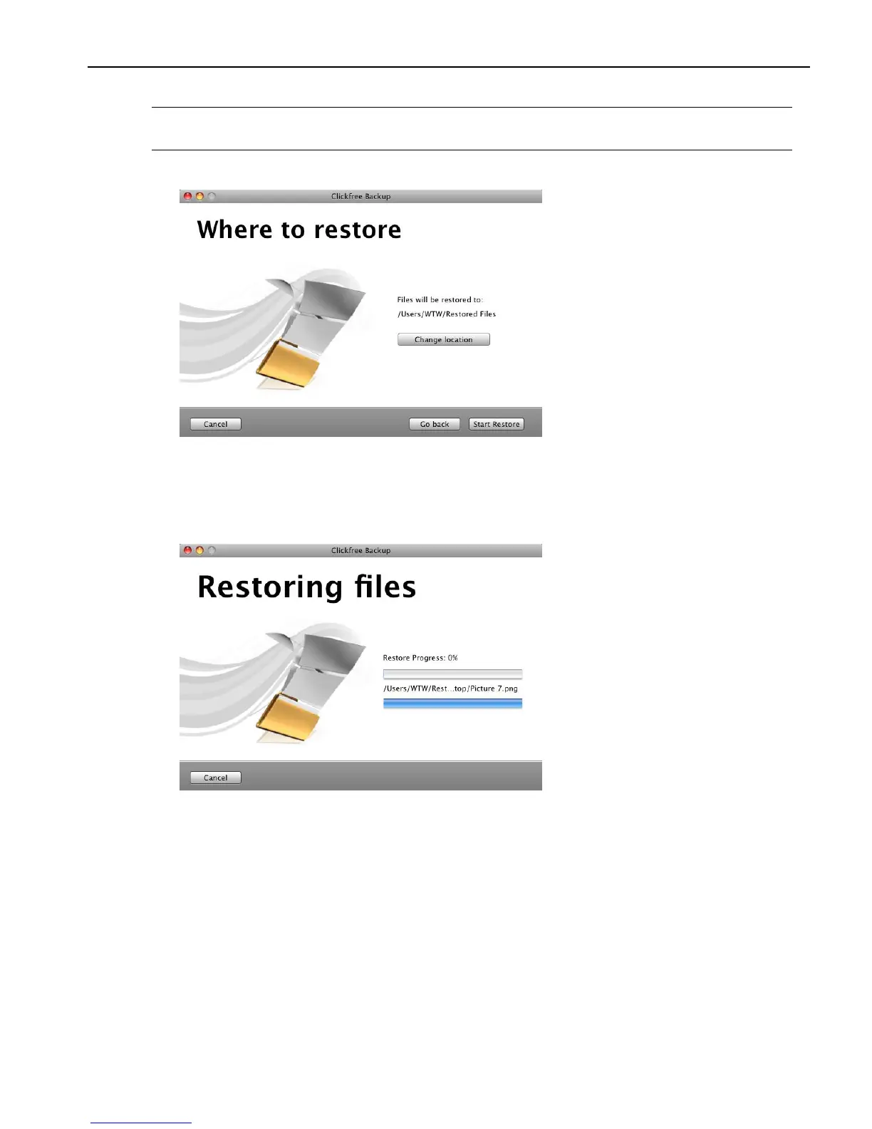 As Clickfree restores your content, it shows you what is happening and how far it has