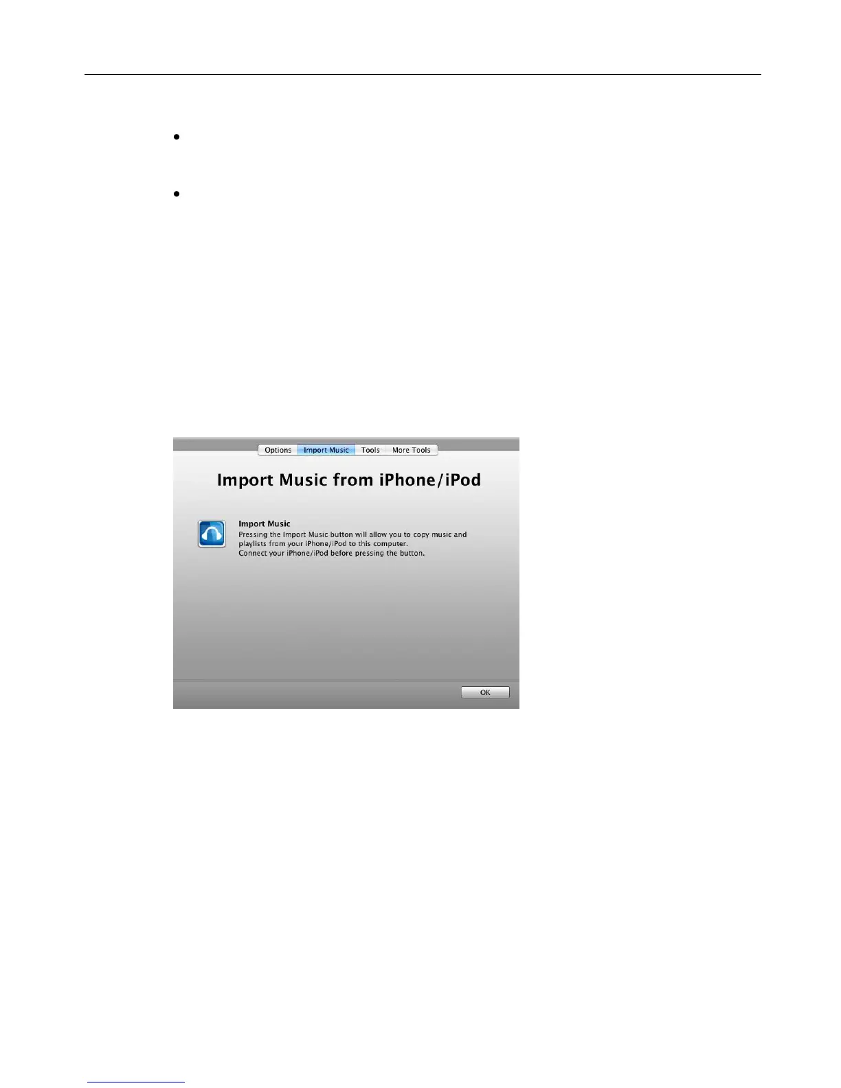 The Import Musicfrom iPhone/iPod screen is displayed: