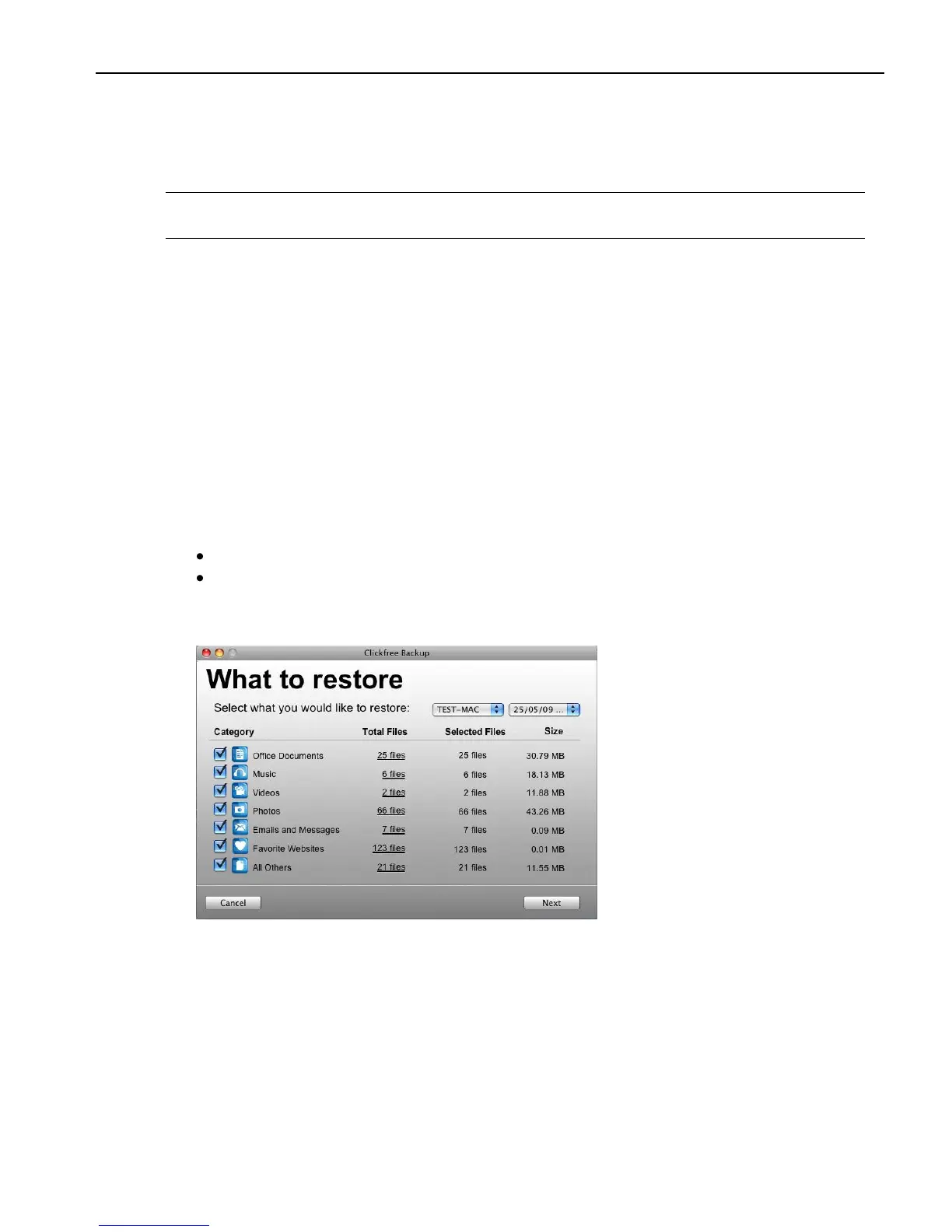 1. Follow steps 1 to 4 of the previous section “How do I let Clickfree restore decide what