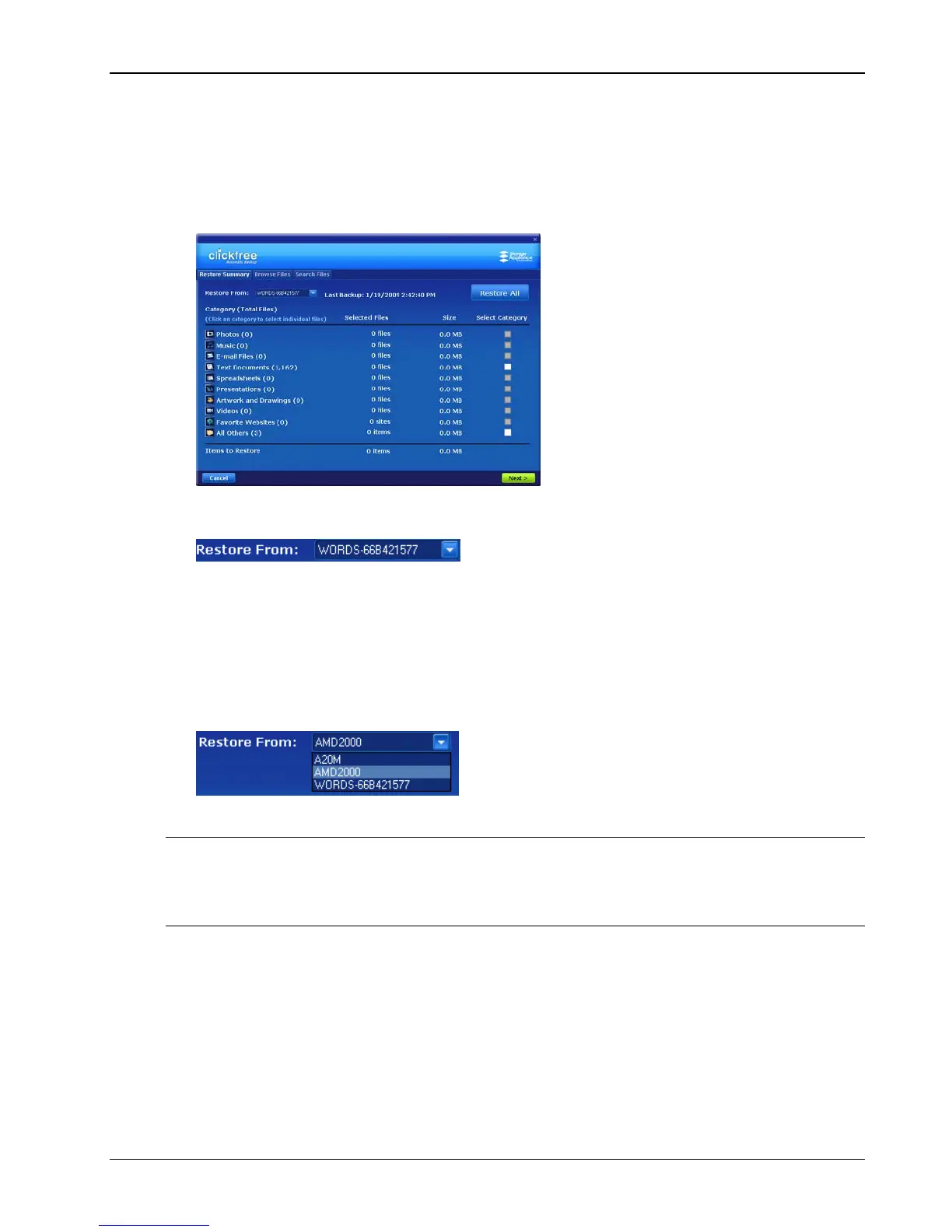 HOOSING THE COMPUTER TO RESTORE FROM