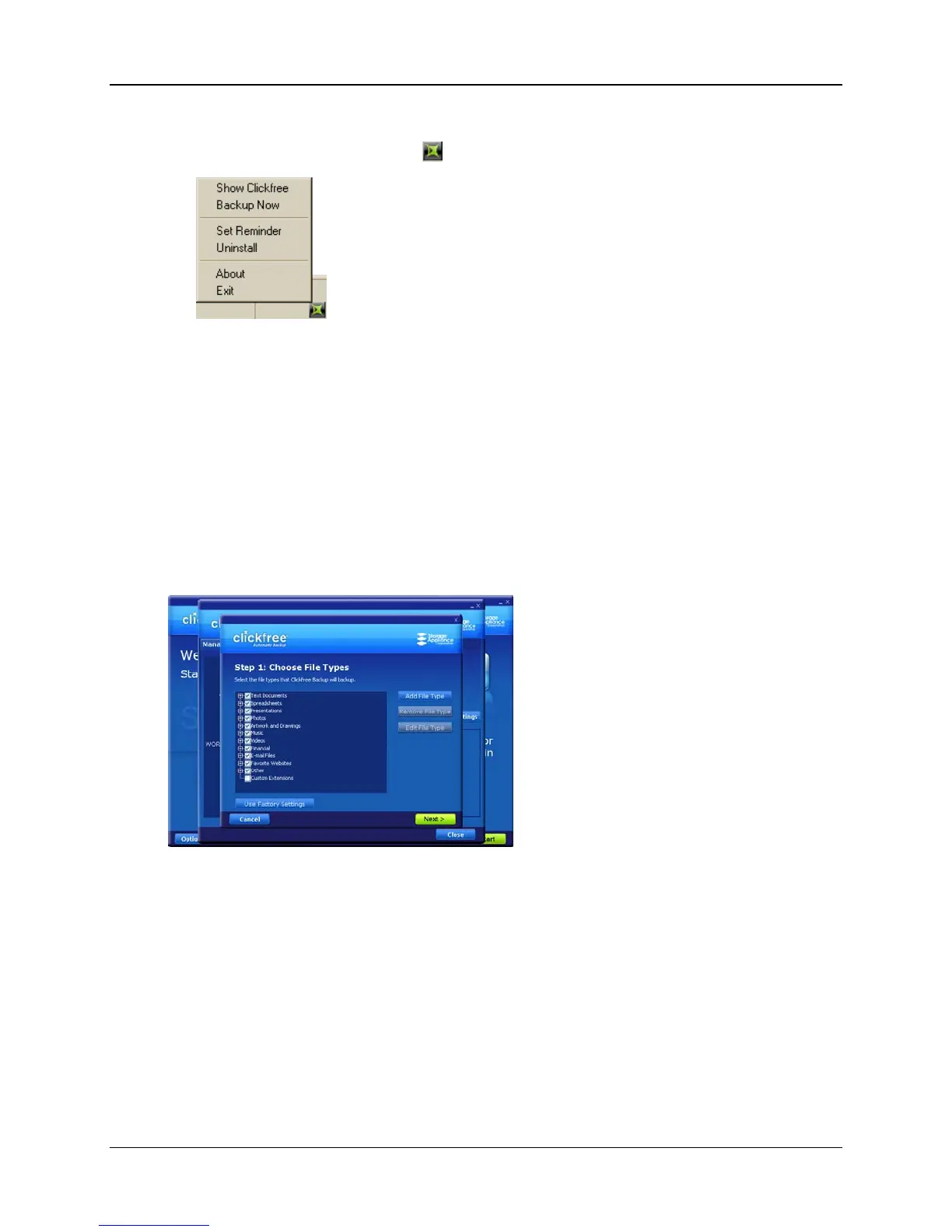 1. Right-click the Clickfree icon in the bottom right corner of your computer screen: