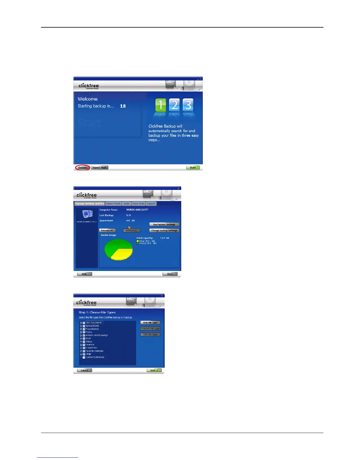 Clickfree Transformer SE User Guide Backing up my content (iPod)