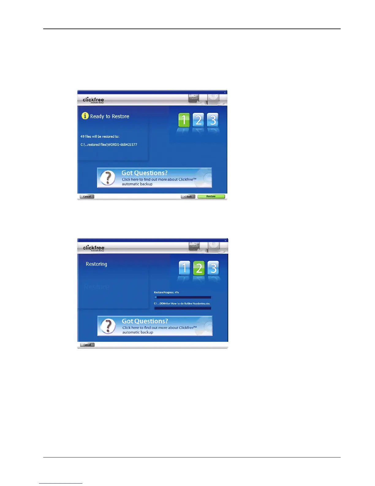 As Clickfree restores your content, it shows you what is happening and how far it has