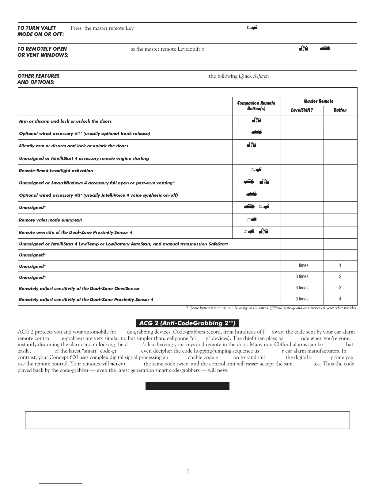 NOTE: Clifford G4 systems will respond only to G4-type ACG 2 remote controls. Older Clifford ACG and non-ACG