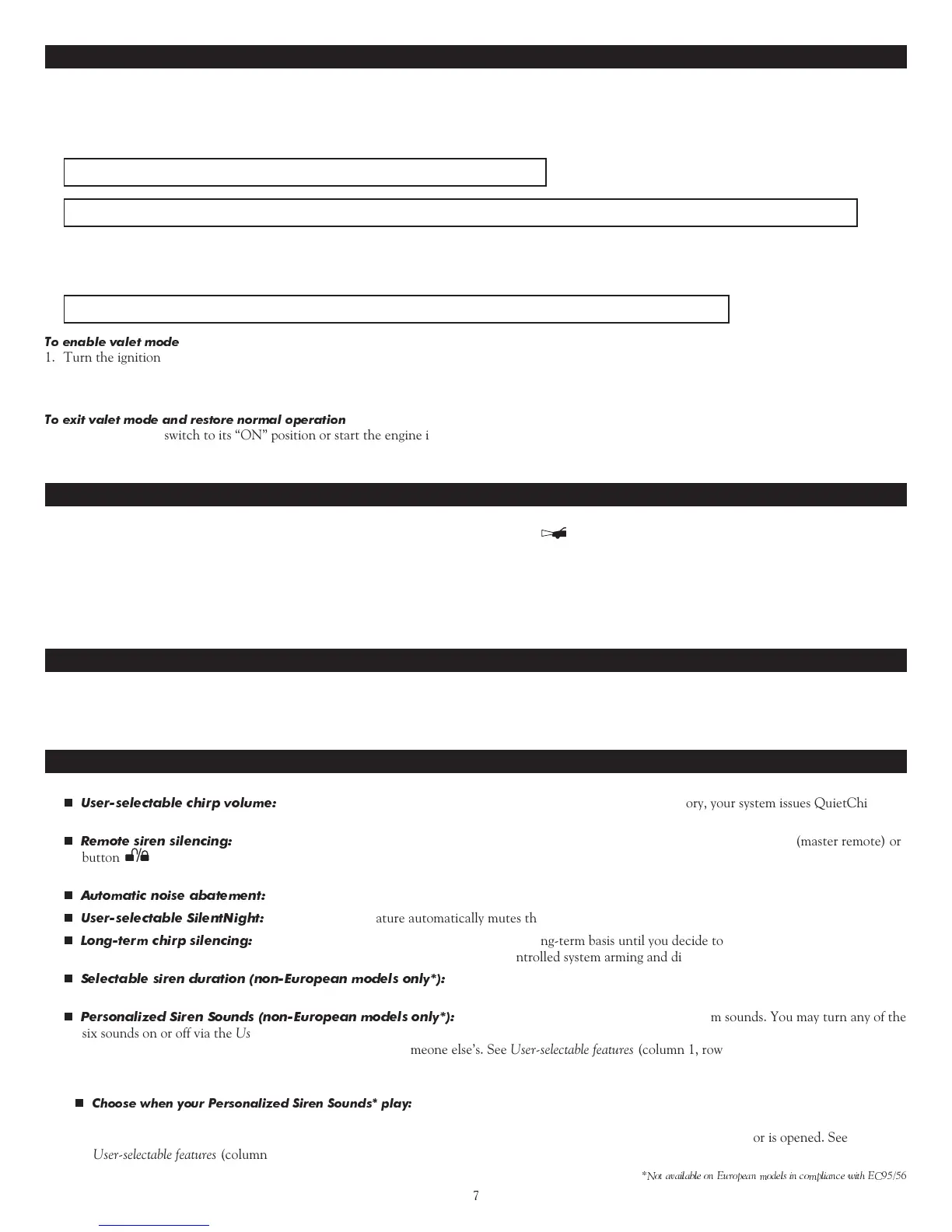 an unlikely scenario, you may prefer to turn off valet mode entry/exit via the remote control using the User-selectable features programming (column 2, row 3).