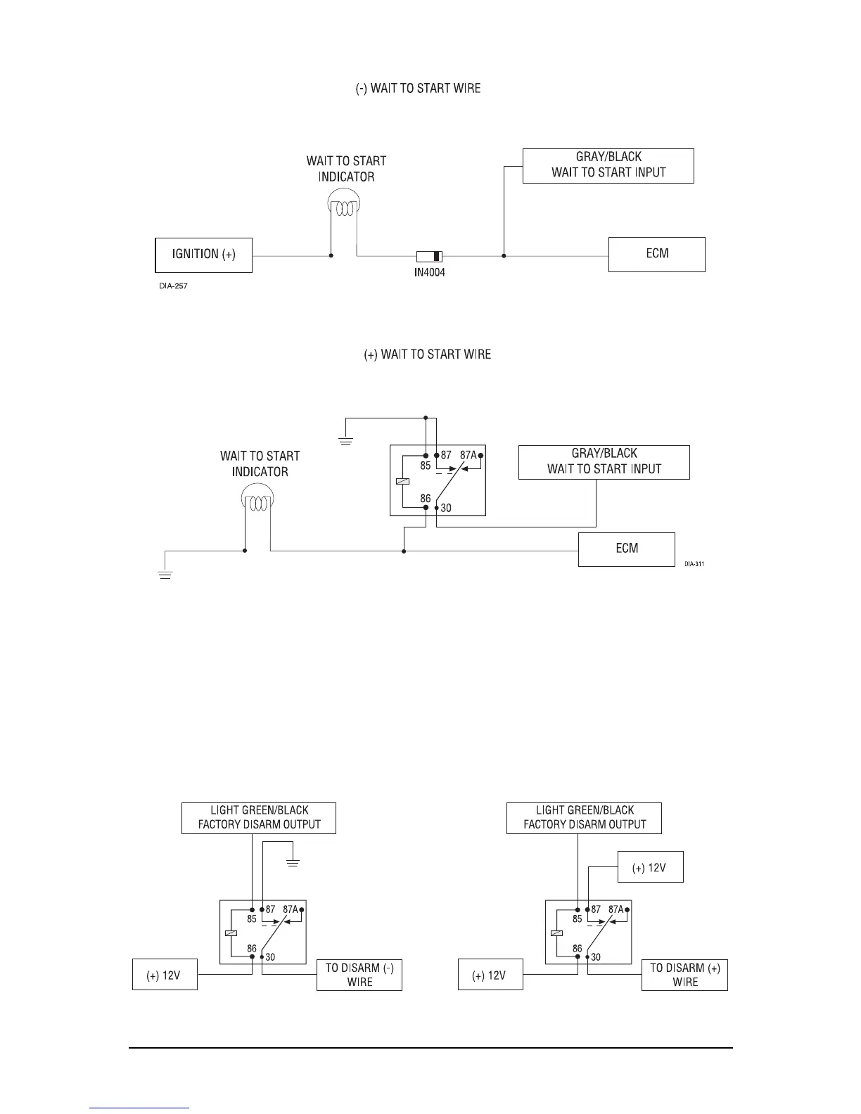 or (+) pulse to the disarm wire as shown in the diagrams below. This wire can also be used as a