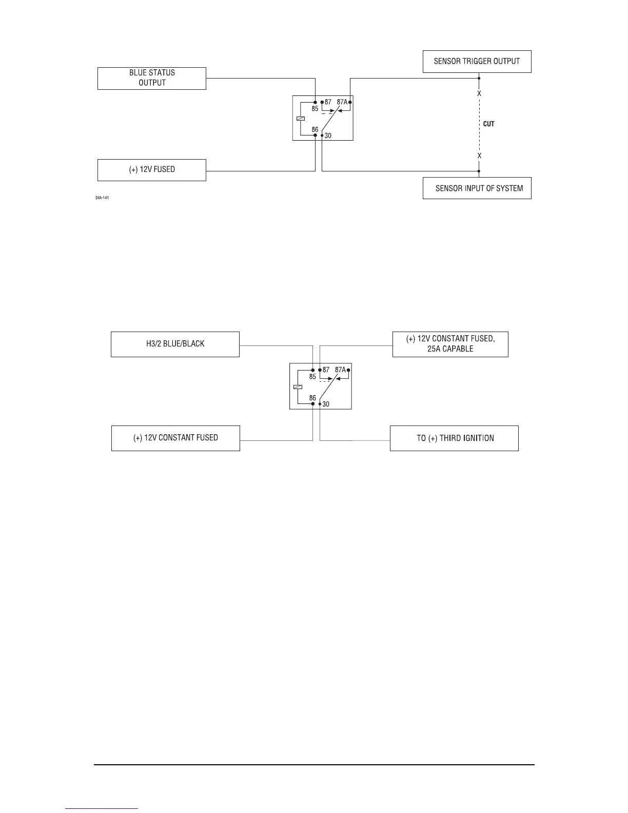 can be used to power a relay to energize a positive (+) third ignition as shown below. This output is