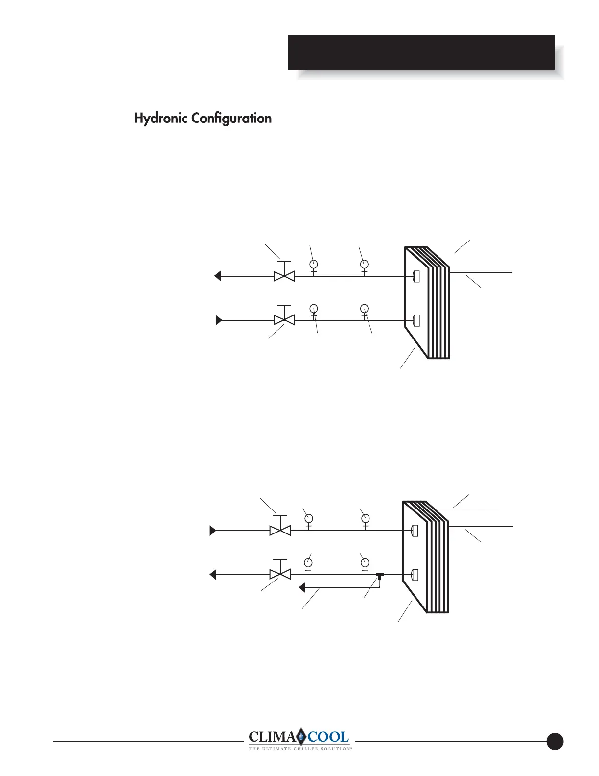 NOTE: Figures 1 and 2 depict hydronic piping in each ClimaCool