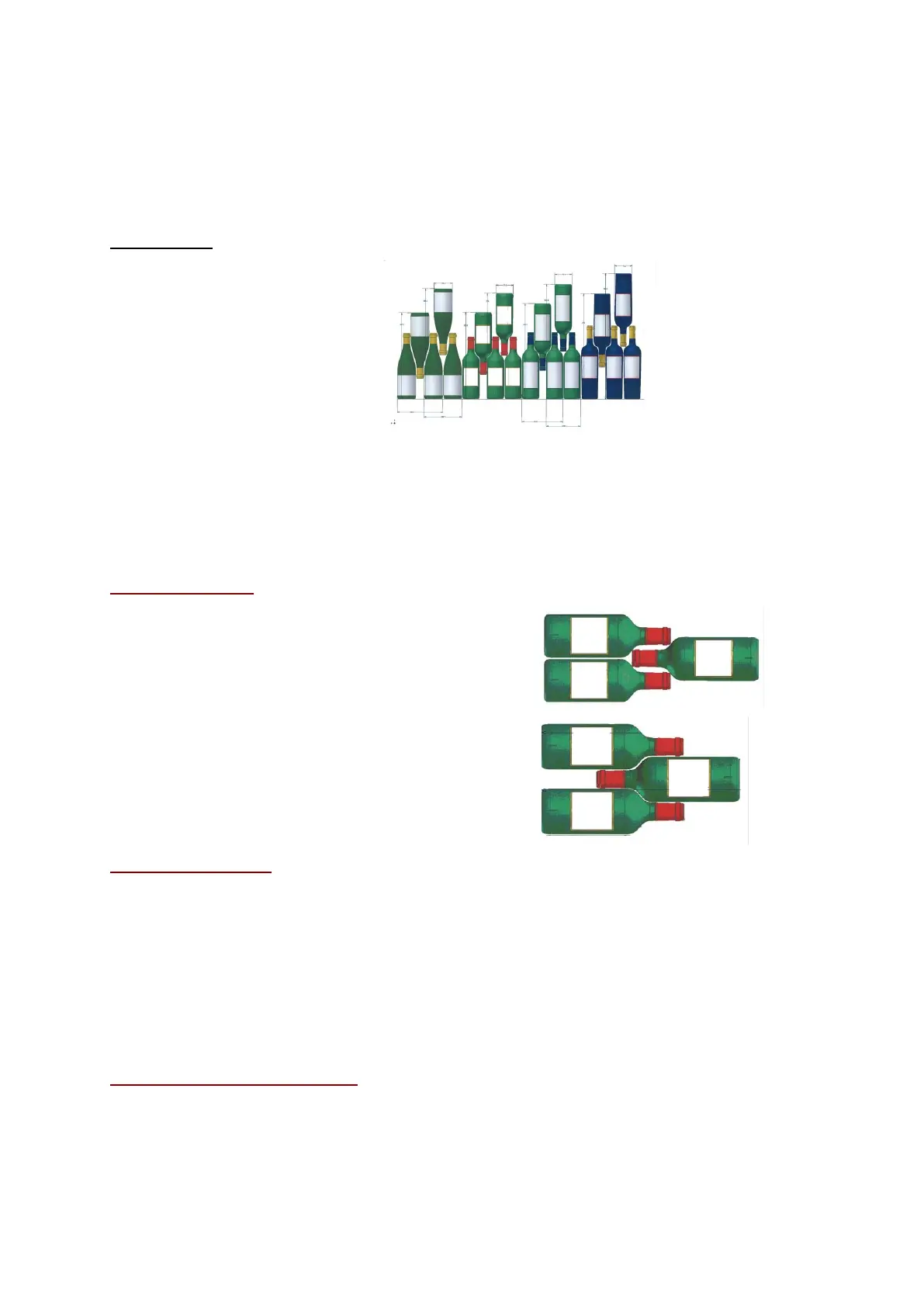 Qui possiamo vedere 4 tipi di bottiglie da 75 cl, borgognona e bordolese, di varie dimensioni. Esistono molti