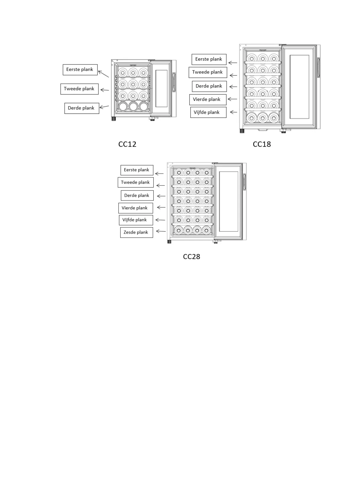 aan zonlicht, aantal deuropeningen en de hoeveelheid opgeslagen flessen. Lichte