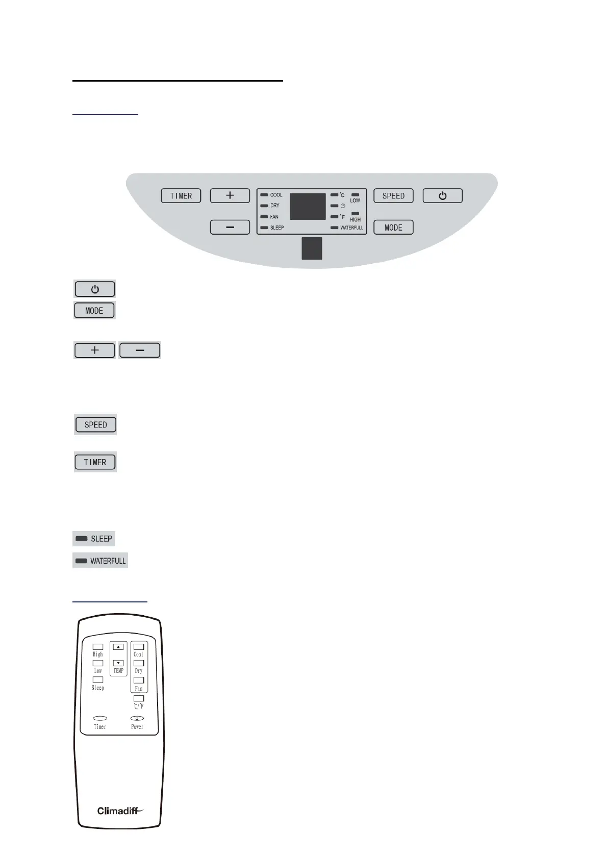 POWER: press this button to turn ON/OFF the air conditioner.