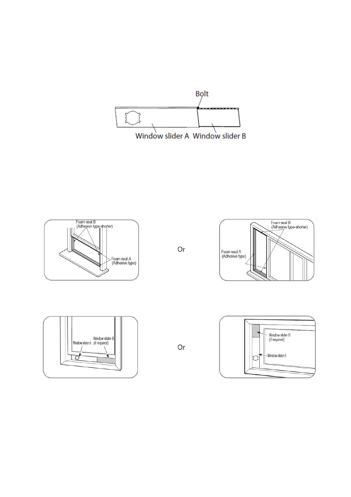1. Cut the adhesive foam seal A and B strips to the proper lengths, and attach them to the window sash