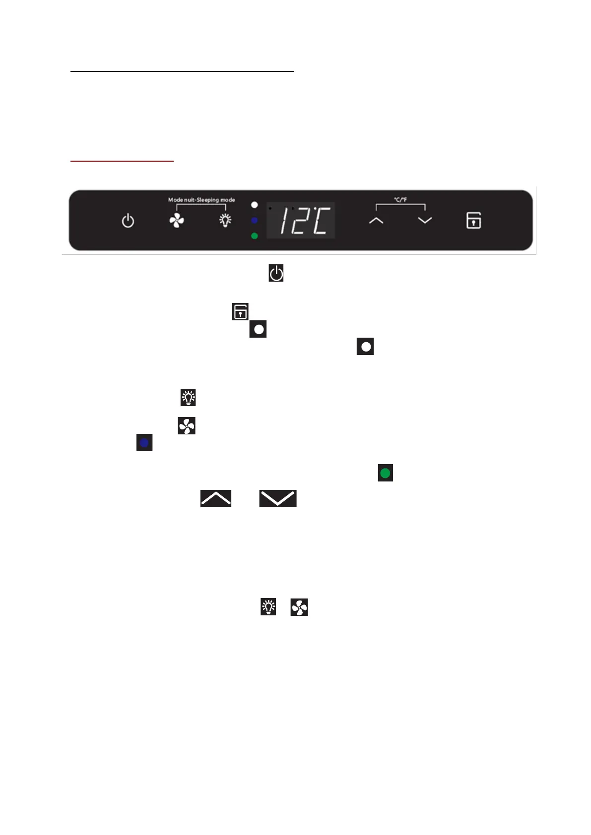 - Appuyez sur les boutons et pour régler la température de votre cave à vin. La