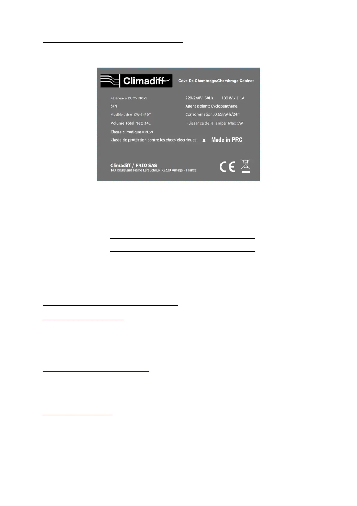 The name plate attached to the inside or rear of the appliance (depending on the model) includes all