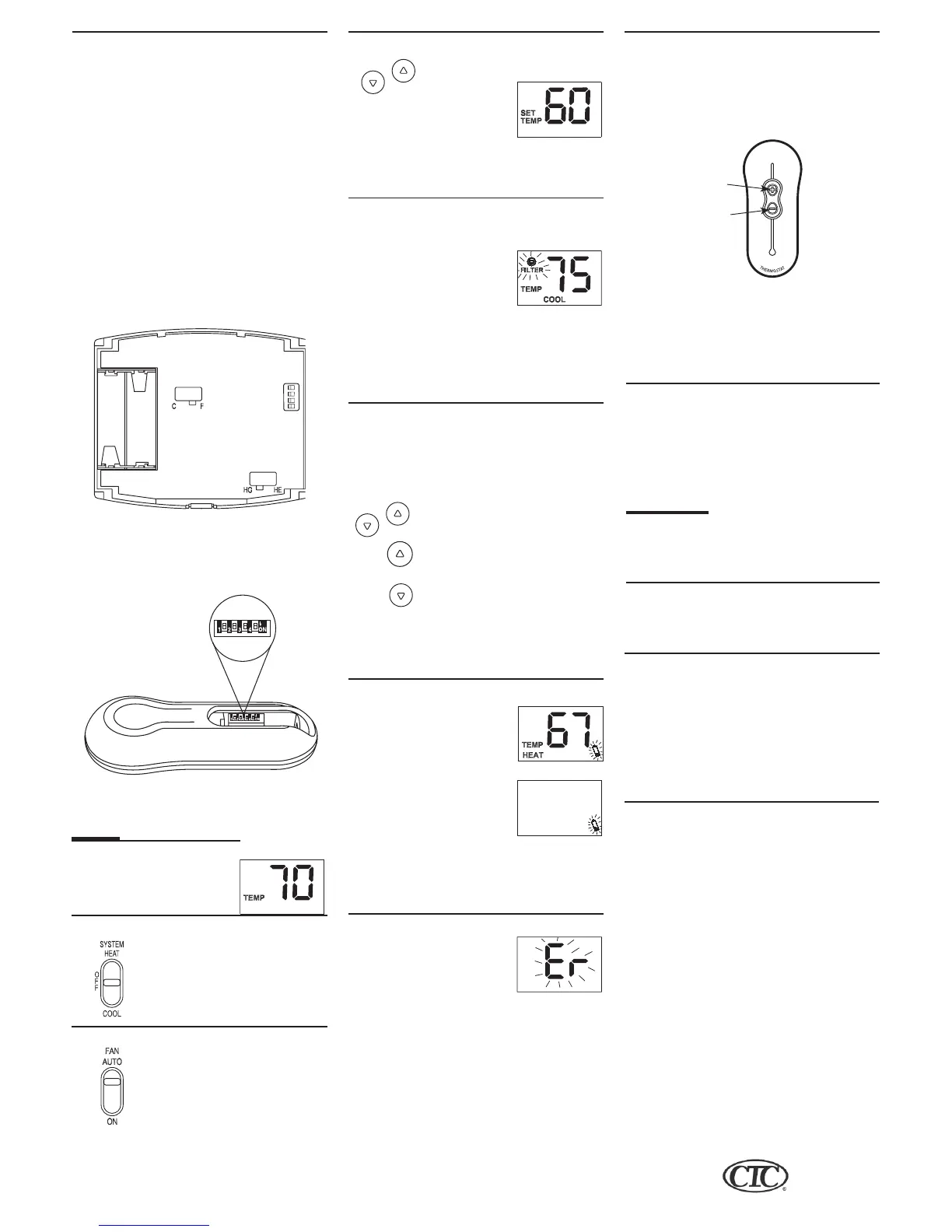 thermostat to adjust the temperature setting. Press the “+” side of the remote