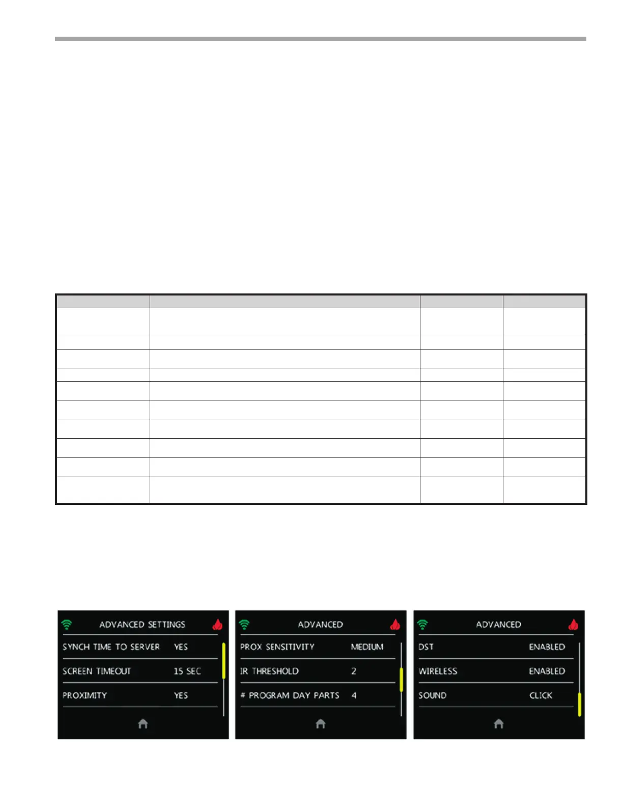 Touch Volume Congure the sound made when touching the thermostat. O, Click, Beep Click