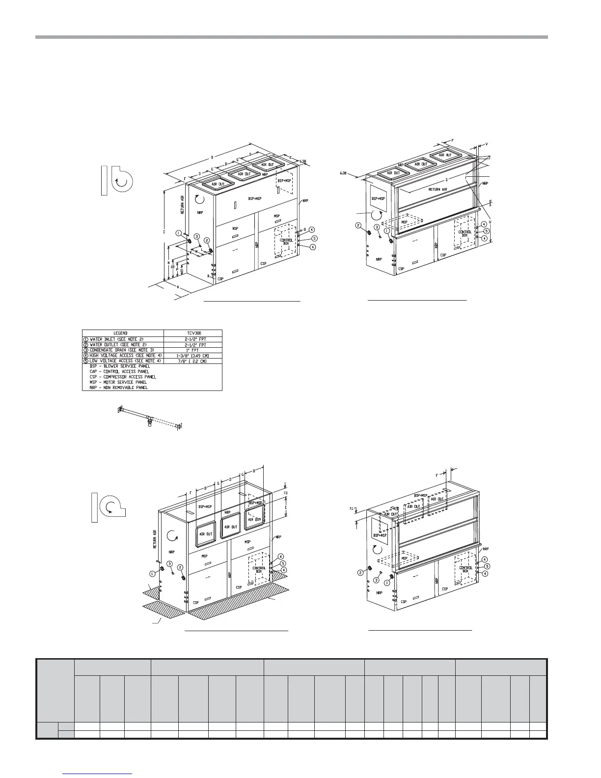 6. Overall cabinet height dimension does not include duct flange for top discharge