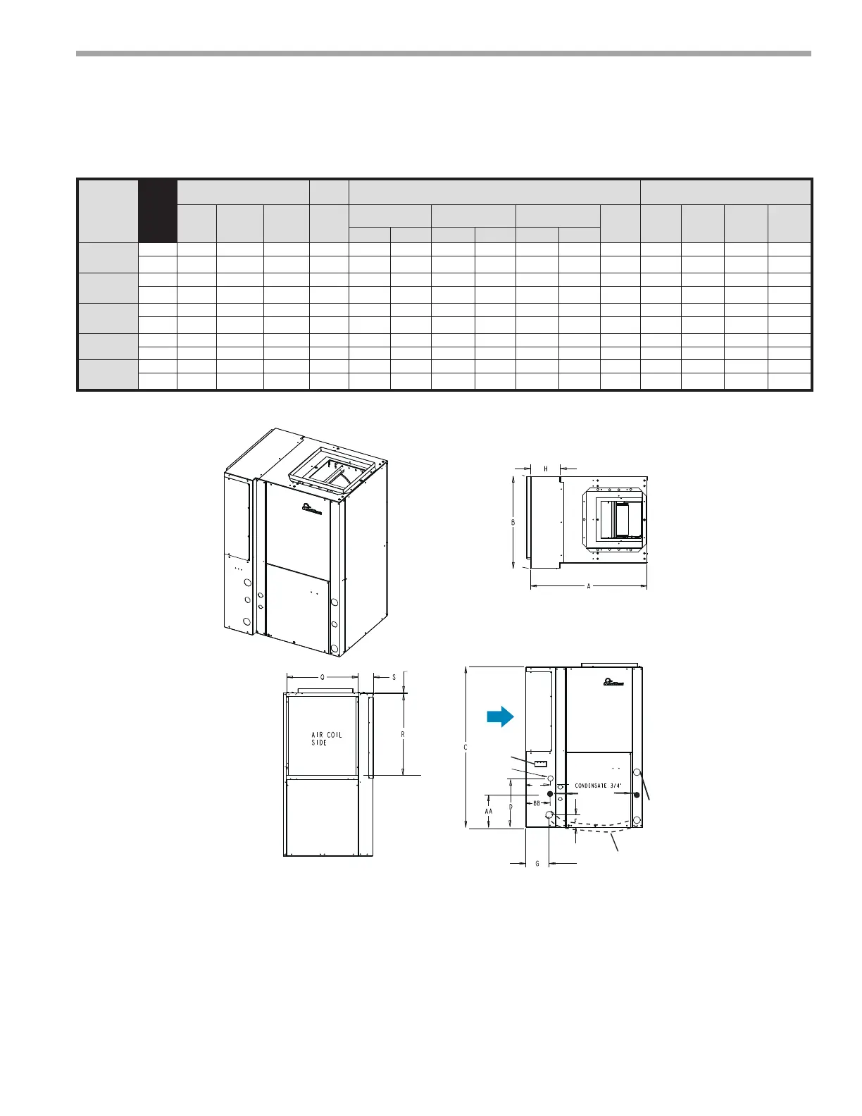 2. Condensate drains are 3/4” FPT, both are internally trapped,