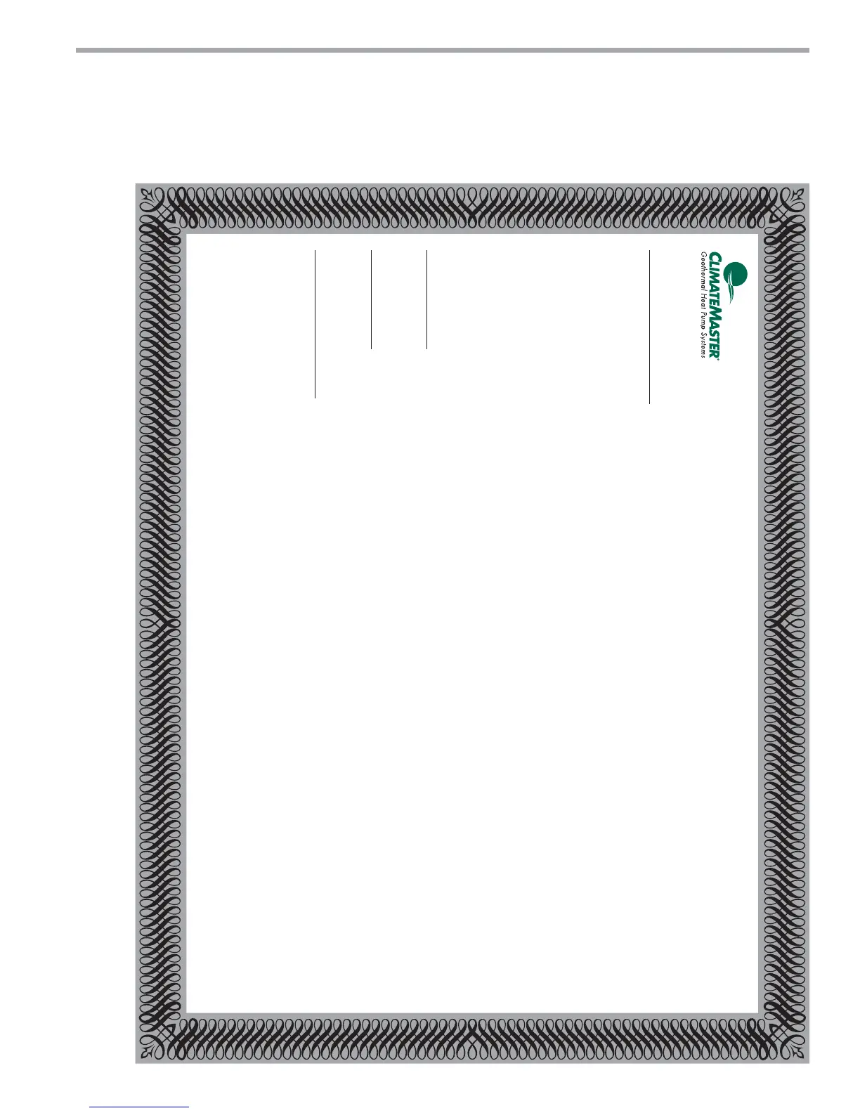 Climate Master, Inc. • Customer Service • 7300 S.W. 44th Street • Oklahoma City, Oklahoma, U.S.A. 73179 • (405) 745-6000 • FAX (405) 745-6068
