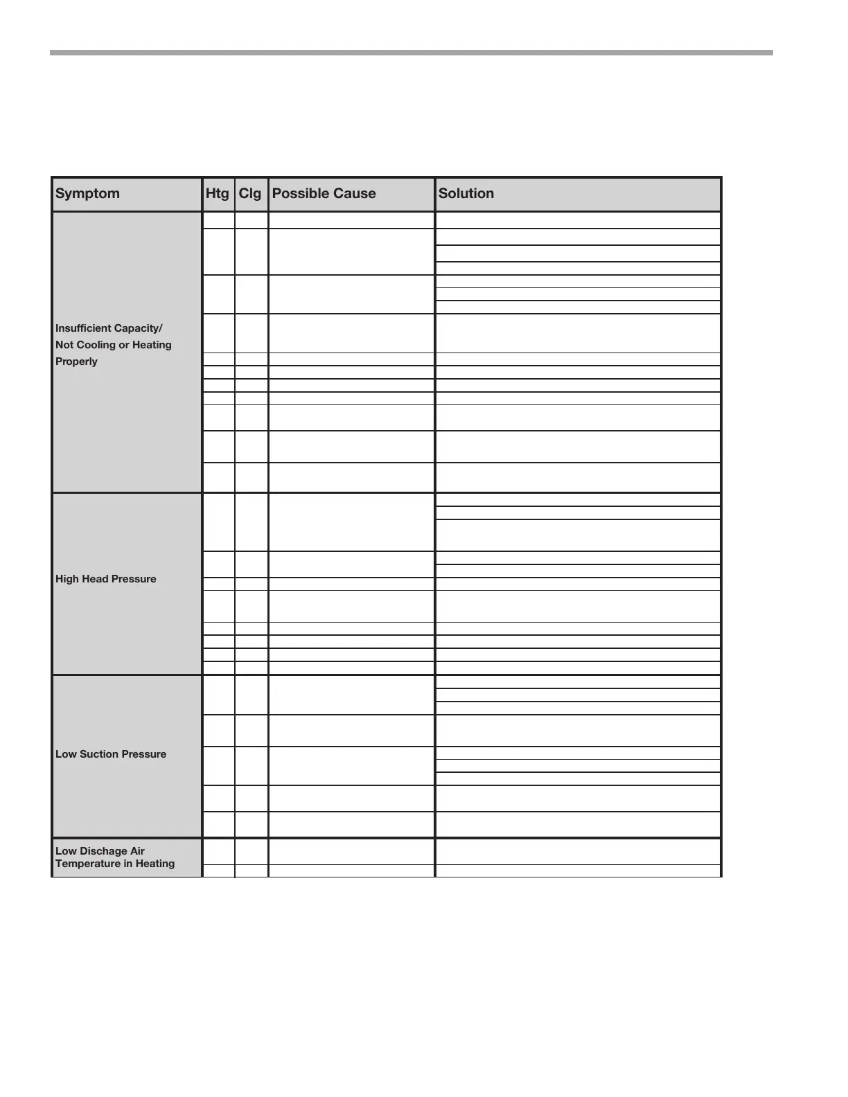 Symptom Htg Clg Possible Cause Solution