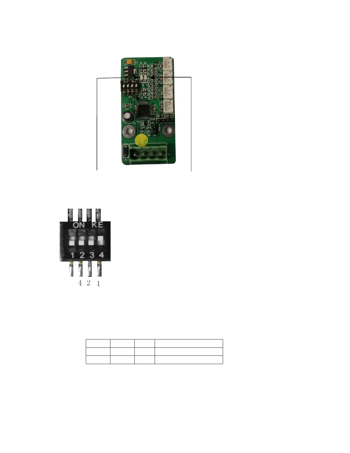 2, 3, 4 bit code represents the RS485 address, when the shifting to the ON position are respectively corresponding to 4,