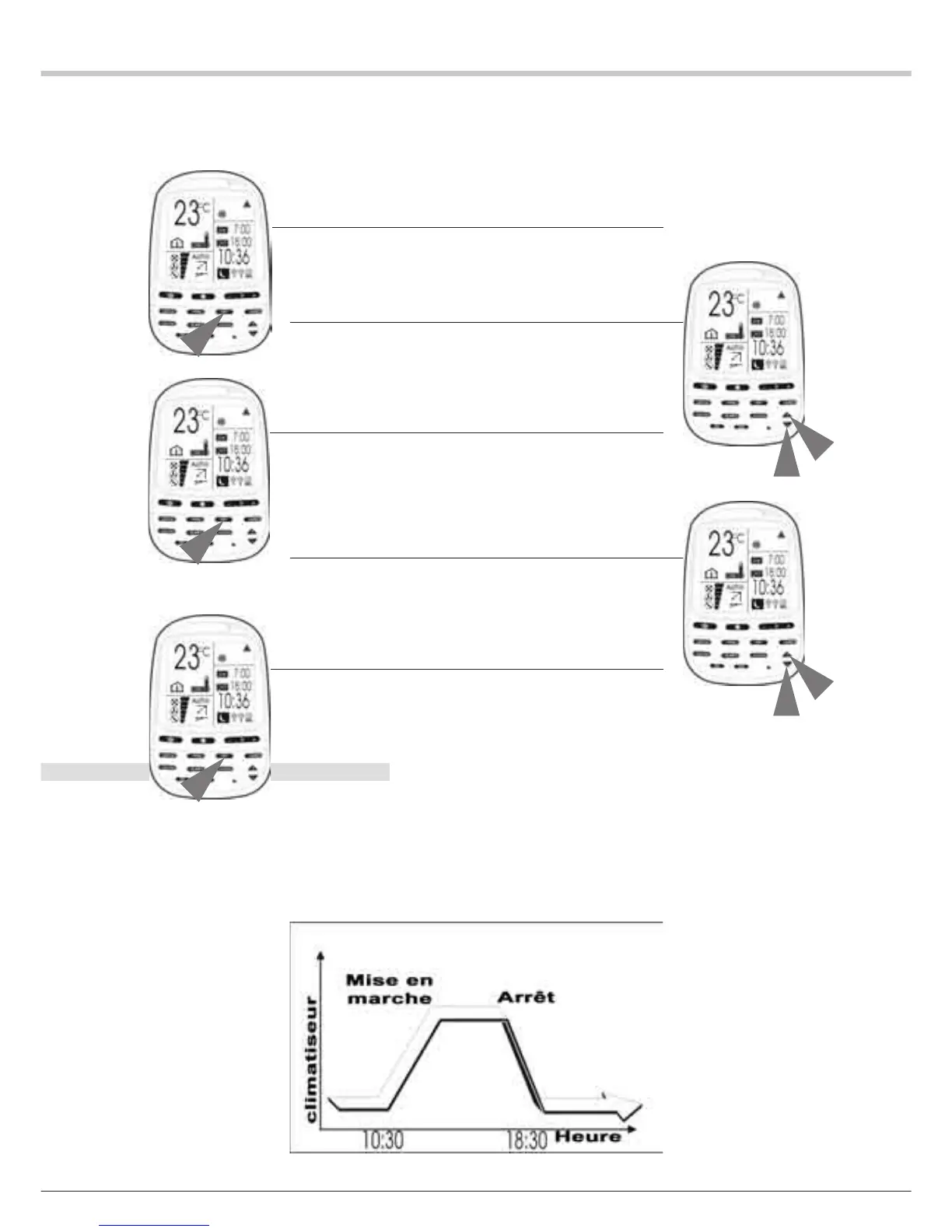 EXEMPLE : Mise en marche du climatiseur à 10:30 et arrêt à