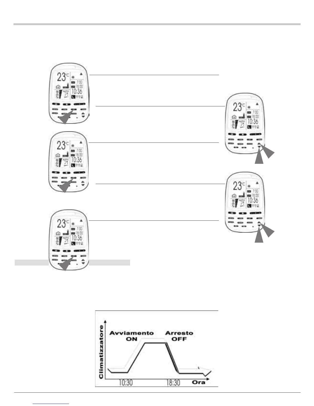 ESEMPIO: Avviamento del climatizzatore alle ore 10:30 e Arresto alle