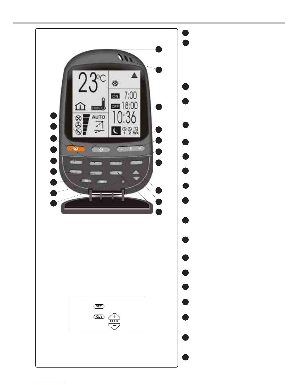 Tecla SET: fija las horas de funcionamiento y/o de