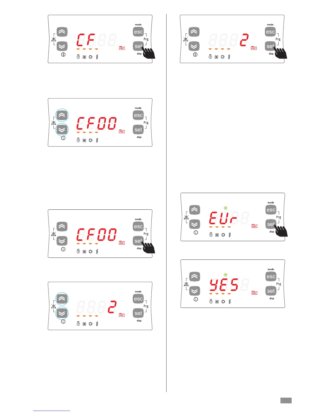 To set the individual CF parameters, simply press set again.