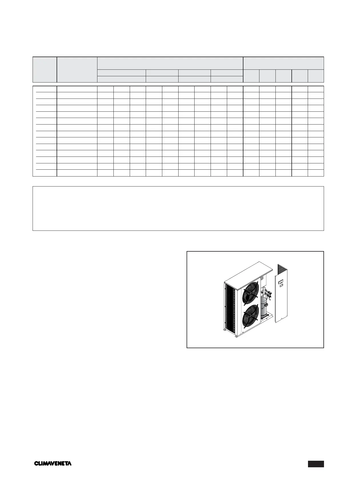 (1) External air temperature 35°C - Water temperature at evaporator 12/7°C.