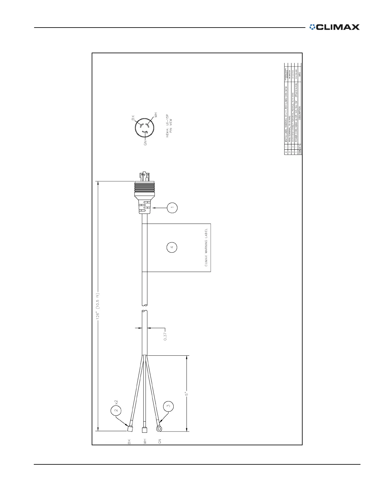 IGURE C-12. BB5000 EIBENSTOCK POWER CABLE ASSEMBLY 2ND GEN 230V DOMESTIC L6-15P PLUG (P/N 88655 E00175)