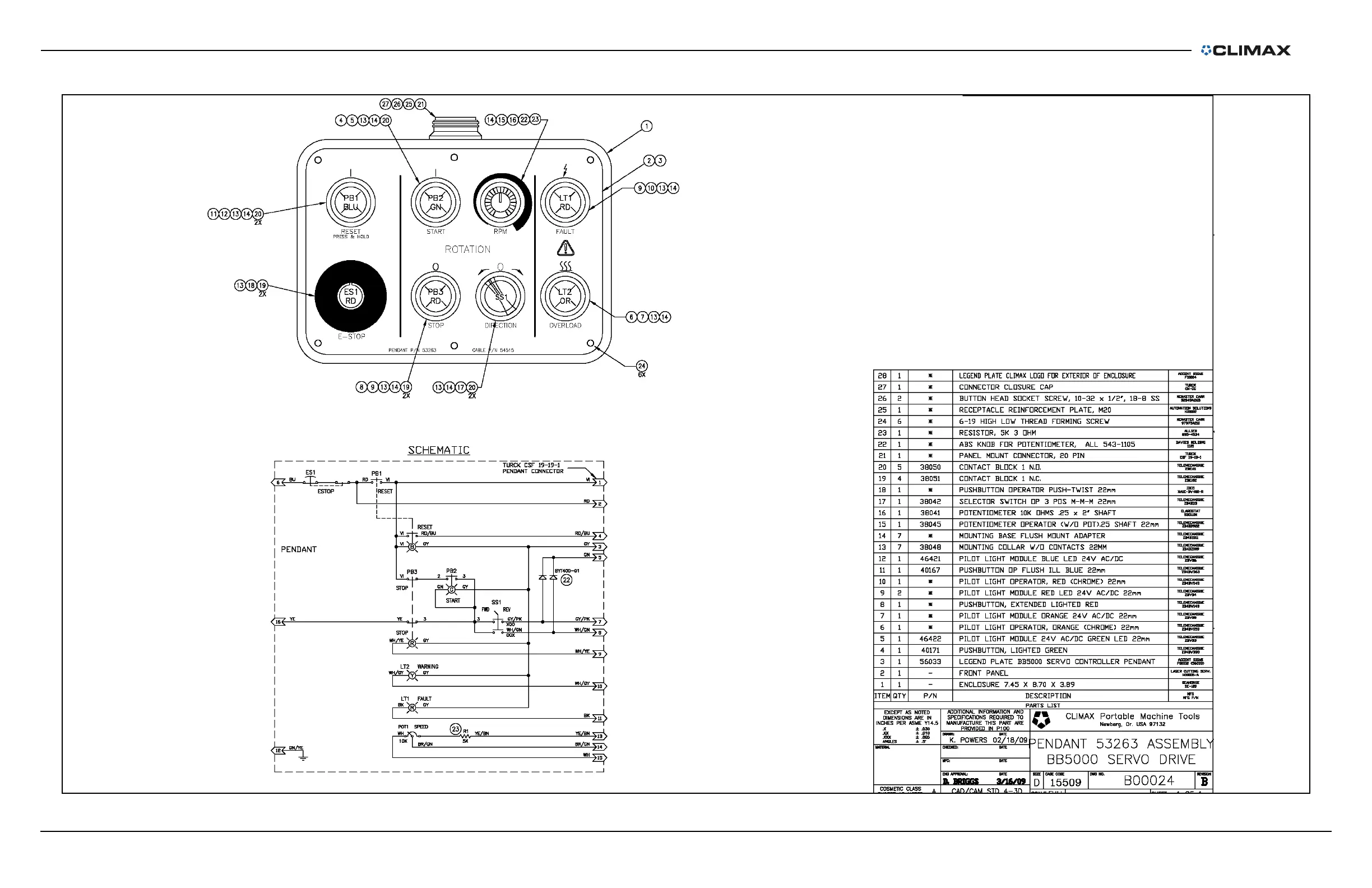 FIGURE C-20. BB5000 SERVO PENDANT ASSEMBLY (P/N B00024)