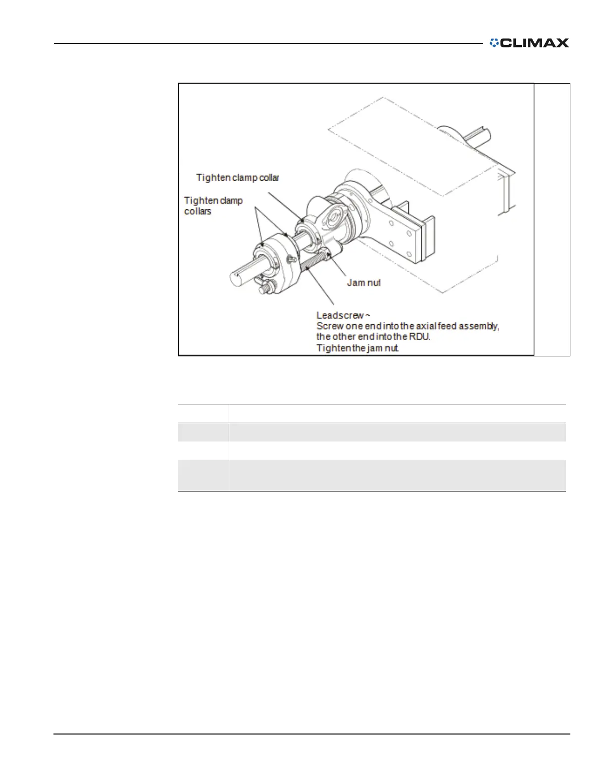 11. Thread the leadscrew into the RDU housing. Secure the leadscrew by tight-