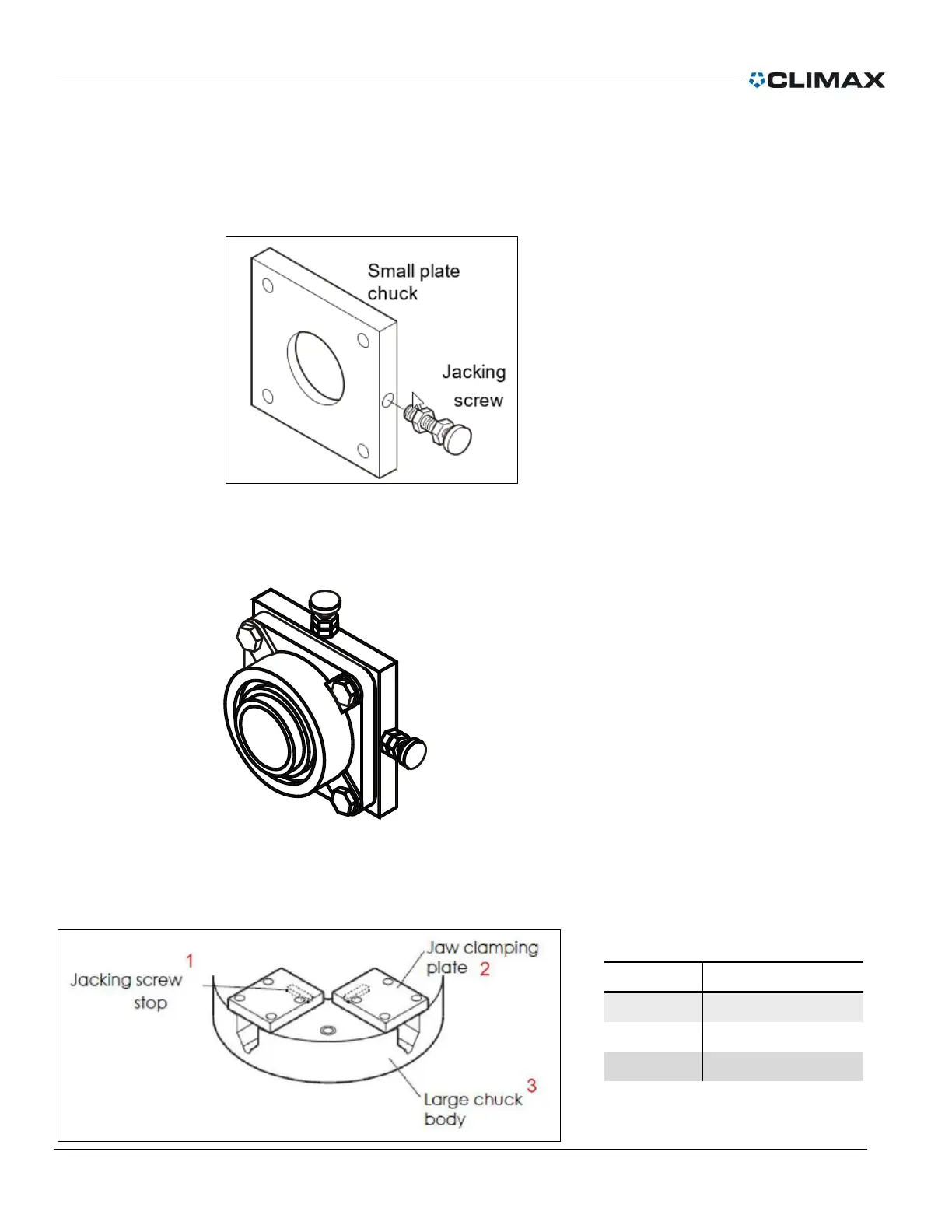 a. Loosely mount the jaw clamping plates to the chuck body. Check that the stop plates on the
